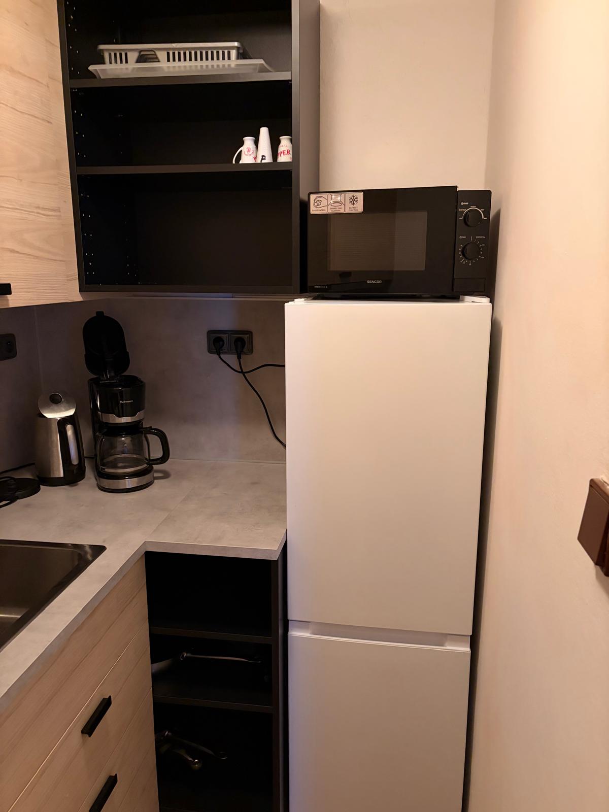 - 2 pokoje, jídelna, kuchyňský kout (sporák, mikrovlnná trouba, lednice, rychlovarná konvice, myčka nádobí, WC+sprcha